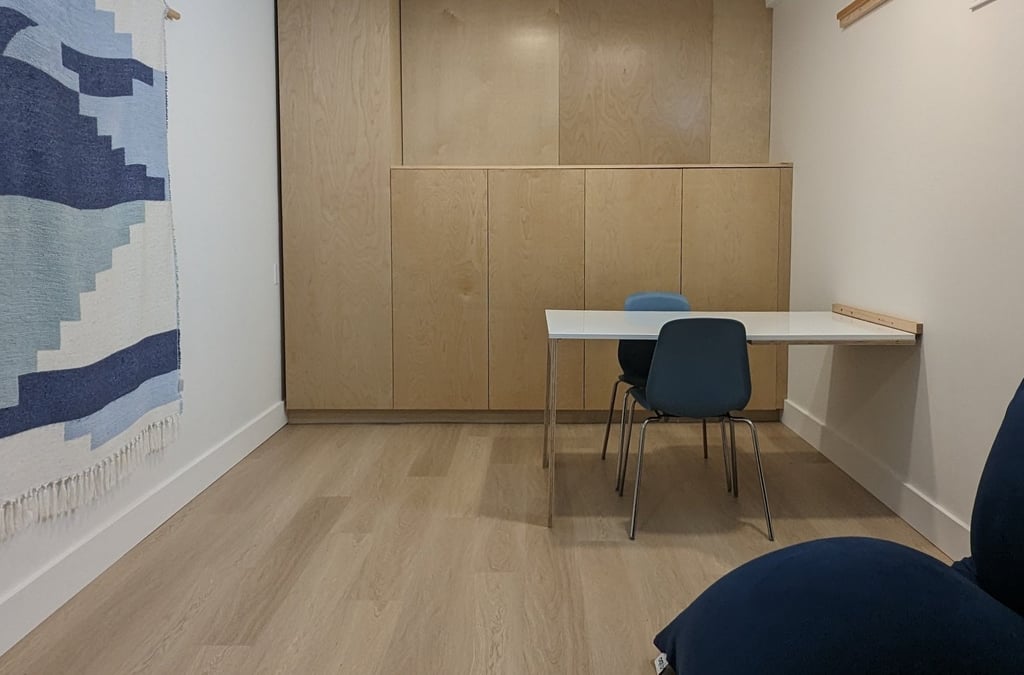 Community Kids OT is a pediatric occupational therapy practice in Comox Valley. Established in 2023 as a mobile practice, they quickly grew and settled into their cozy brick-and-mortar location in Downtown Courtenay. The space ticked many boxes but its compact size of just under 200 square feet posed some challenges. Especially considering that therapy sessions often switch between obstacle courses and table work. They knew they would need to be smart with their design and furniture choices to make the most of the space.