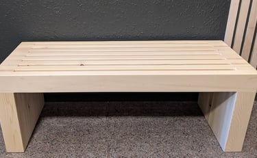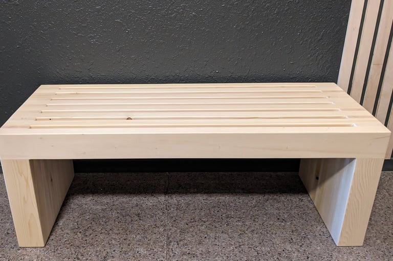 For the clinic's waiting area, we crafted a simple, yet elegant two-seater slatted bench. Its clean lines and natural finish complement the building's decor, offering a comfortable spot for clients to wait before sessions.